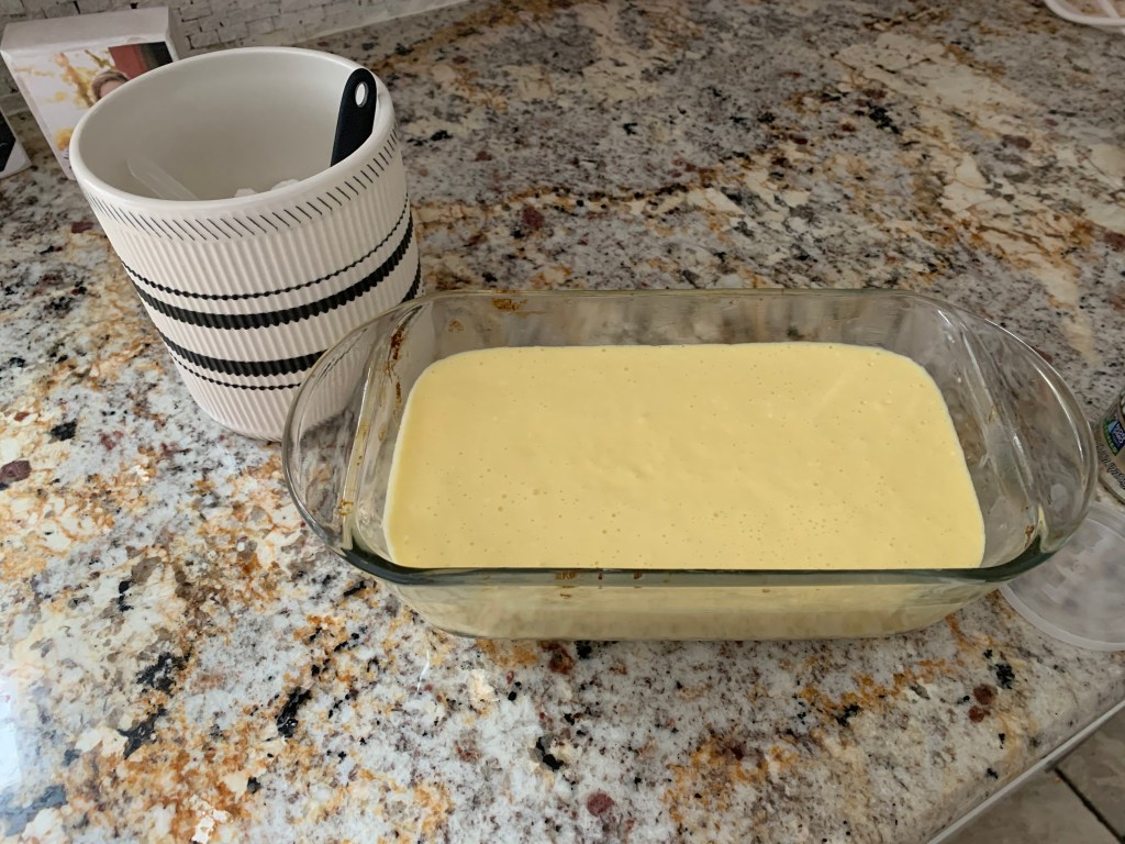 Beat eggs well and use mixer to mix in softened cream cheese. Mix in all other ingredients and bake at 350 degrees for 45 minutes.