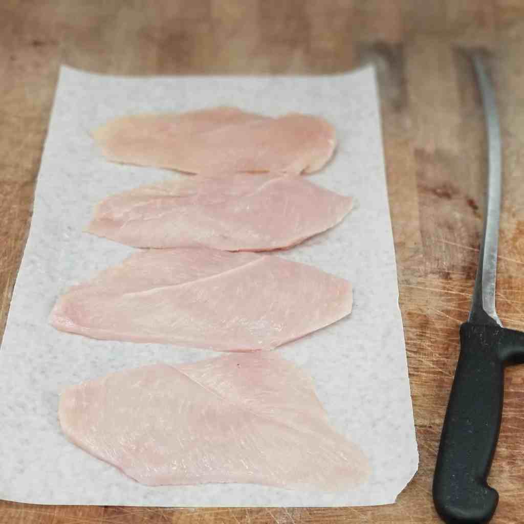 Continue with the rest of your cutlets and hopefully you will have six to eight to bake up depending on how the cutting went. Salt and pepper them all generously and drizzle with olive oil. You can also add some fresh lemon juice, especially if skipping the cream sauce. Bake at 375 for 25-30 minutes. Serve with roasted asparagus or any of your favorite vegetables. I usually pair it with asparagus it seems. Read more if you want to try the sauce as well. We always do 🙂