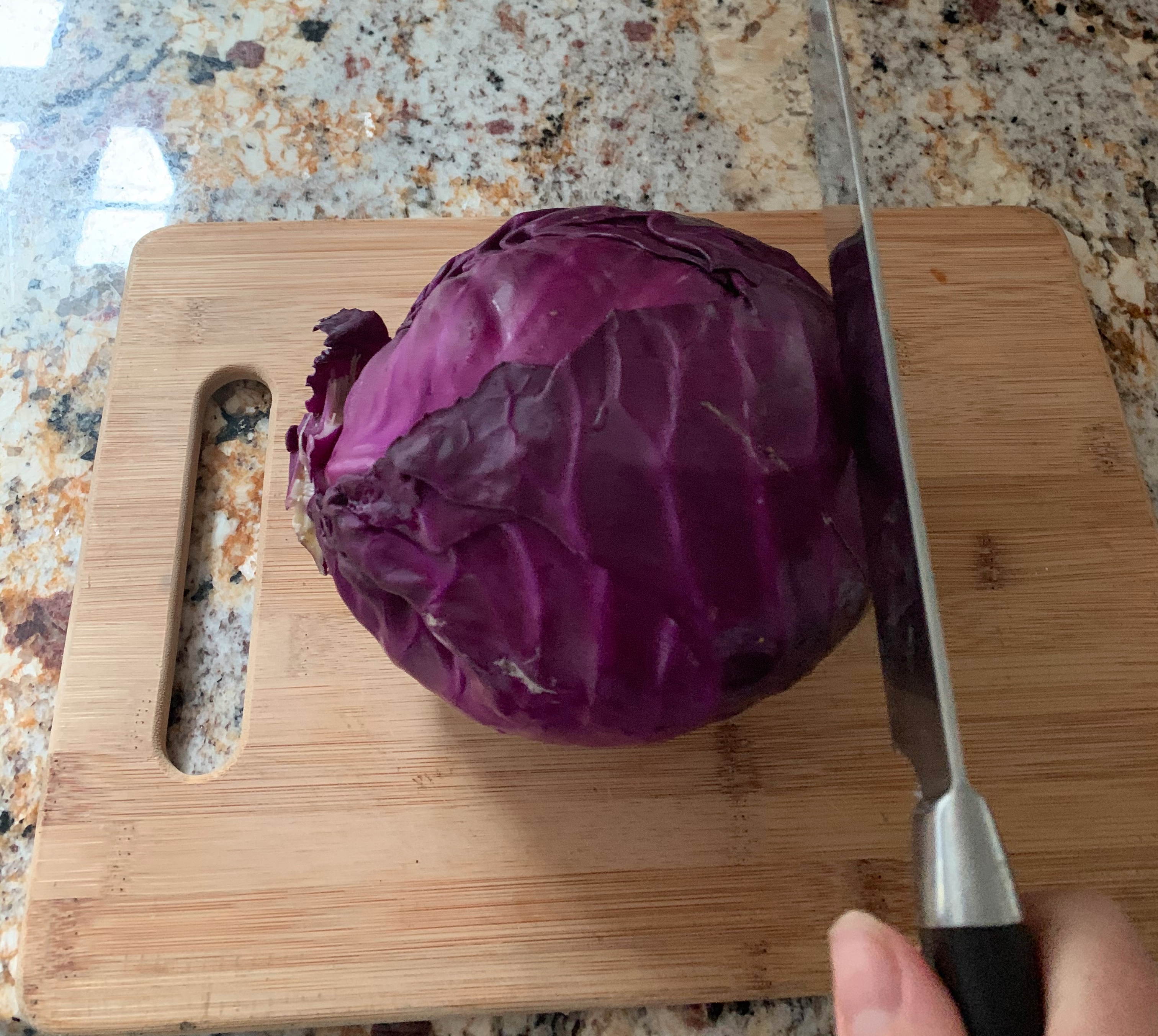 *I typically only chop up half the cabbage at a time since its just for two of us but if you are cooking for more than two people or want more for later go ahead and chop up the whole head.