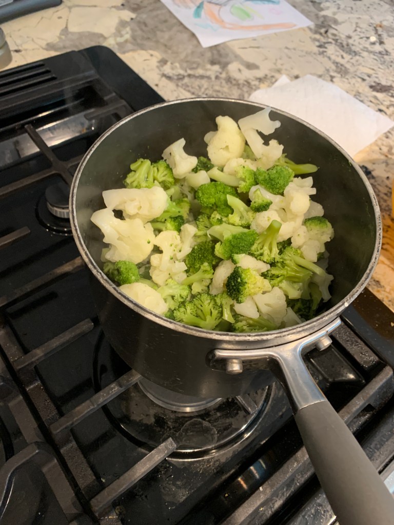 Lately, everything I make for dinner my husband is so unexcited about :-/. I hate hearing ‘oh that again?!’ but …In truth, I have been recycling the same 5 or 6 recipes that are easiest each week, so I can understand the boredom. Also, I hate admitting to this, but my kids rarely eat what he and I have for dinner. This has been something I have wanted to address for a long time now but continue to put off. So I’ve been feeling like a short order chef, making a separate lunch and dinner for my kids and than something different for the adults. How fabulous would it be if we all ate the same thing and everyone actually liked it?! I think this is why I have been rotating the same easy things, since I’m making several dinners at once and it makes sense to make the easiest recipes that I know by heart. Unfortunately, this is not a post about how my dream came true and we all ate and loved the same thing, ha! More about how I tried something new and we both loved it! My husband REALLY super loved it and I will definitely be adding it to my ‘easy’ to make list. I think it would be really good for a pot luck too. It made a pretty big batch so… yay for leftovers! I used frozen cauliflower and broccoli for this because I personally hate chopping those two things up. Also…I read once that frozen vegetables actually have more nutrients. I have no idea how true that is but I choose to believe its true so I can feel better about using them ;). Also, I know not everyone is a mayonnaise fan so feel free to double up the cream cheese instead or maybe sub the mayo for sour cream or plain greek yogurt. If you need it to be dairy free I think canned coconut milk would work nicely and either skip the cheese or use a vegan one. Try it and love it!!