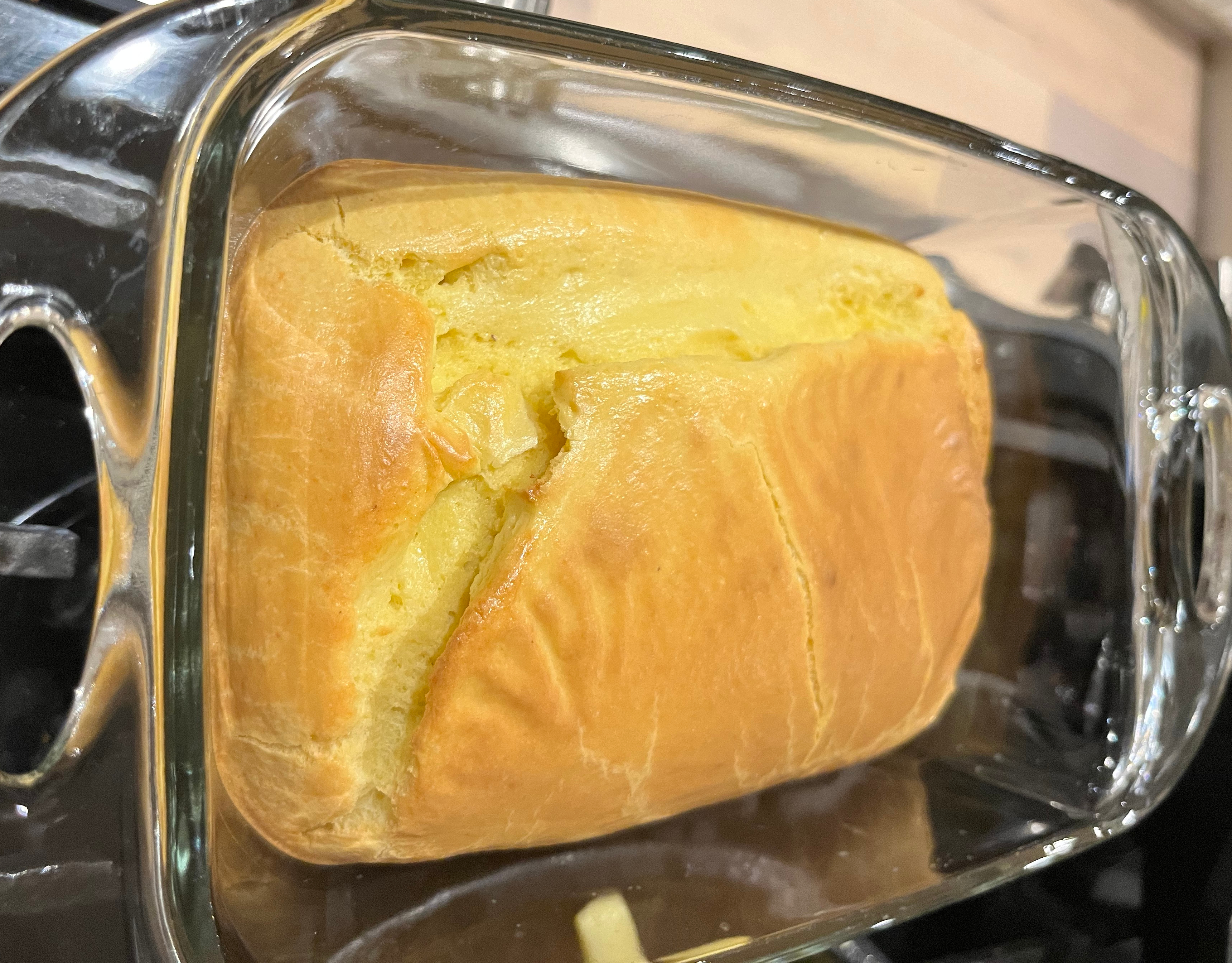 Place all ingredients into a blender and mix away until smooth like pancake batter. Spread into a greased bread pan and cook at 350 for 40 minutes 🙂